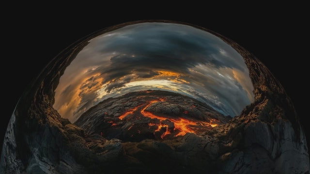 Immerse your audience in the raw, primal power of nature. "Volatile Earth" transports viewers to the edge of a volcanic fissure, where rivers of molten gold carve through hardened basalt under a dramatic, storm-swept sky. This high-definition fulldome sequence captures the hypnotic flow of lava and the contrasting textures of a cooling world, perfect for astronomy shows about planetary formation, earth science documentaries, or intense atmospheric interludes.